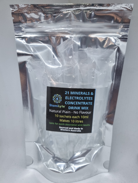 Sourced from ancient natural pure artesian springs in Western Australia, StamiLyte is rich in ionic essential minerals, electrolytes and trace elements. It is designed to promote the availability of minerals to boost energy and to prevent or treat mild dehydration that may occur as a result of sustained strenuous exercise. Mineral analysis available on our website.